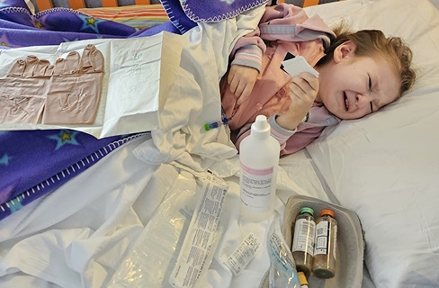 Październik 2021 r.: Marysia trafiła do szpitala z podejrzeniem sepsy. Wysoka gorączka, wymioty, brak apetytu, powiększone komory mózgowe, zaczerwienienie wokół zastawki. Wykryto m.in. powrót groźnej bakterii pseudomonas w płynie mózgowo-rdzeniowym oraz sepsę. Po kilkudniowym pobycie na intensywnej terapii Marysia wróciła na chirurgię, a rodzice szybko zorganizowali zbiórkę na specjalistyczny transport medyczny do Rzymu, aby kontynuować leczenie u lekarzy, którzy od 3 lat prowadzą Marysię. Po bezpiecznym przelocie Marysia trafiła pod opiekę Szpitala Pediatrycznego Dzieciątka Jezus w Rzymie. Leczenie objęło liczne zabiegi neurochirurgiczne, badania, wdrażanie leków i codzienną fizjoterapię. Na Boże Narodzenie Marysia dostała przepustkę do domu, aby w połowie stycznia wrócić na kontrolę. Rezonans i inne badania wyszedł w porządku, więc mogliśmy powrócić do polskiej rzeczywistości z przedszkolem, specjalistami i terapiami, aby na kolejne kontrolne badania pojechać w czerwcu 2022 roku, a potem następne co 6 miesięcy.